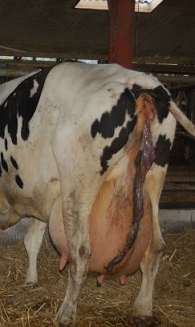 - Laat de koe rusten, ze moet uiteindelijk wel overeind komen. Hierdoor komt de baarmoeder op z'n plaats en krijgen beklemde zenuwen en bloedvaten weer ruimte.