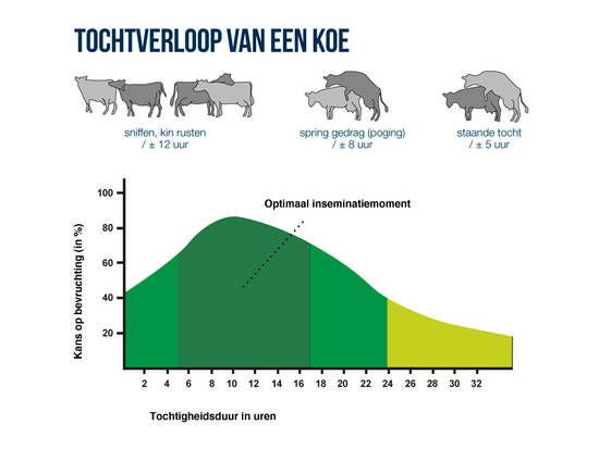 Tijdens de bronstcyclus laat een koe/vaars zich leiden door de volgende punten: